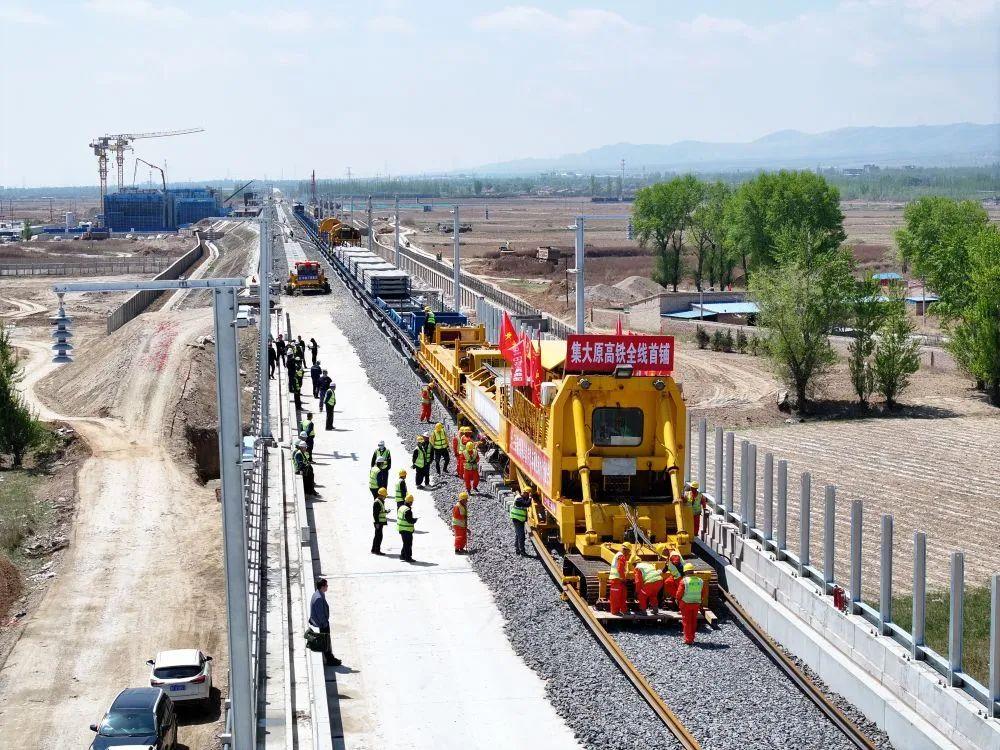 2024/04/22新華社訊:4月20日,位于山西省朔州市的集大原高鐵賀家堡跨榮烏高速特大橋施工現場,隨著首對500米長鋼軌在鋪軌機牽引下緩緩牽出、精準落位,集大原高鐵開始進入鋪軌施工階段。集寧至大同至原平高速鐵路北起內蒙古自...
